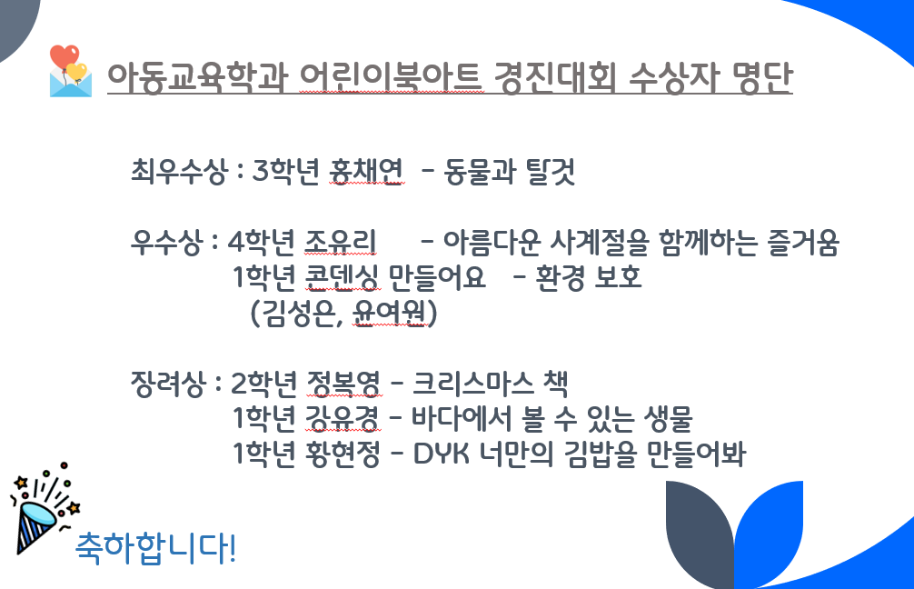 2024년 어린이북아트 경진대회 수상자 안내 글의 상세내용