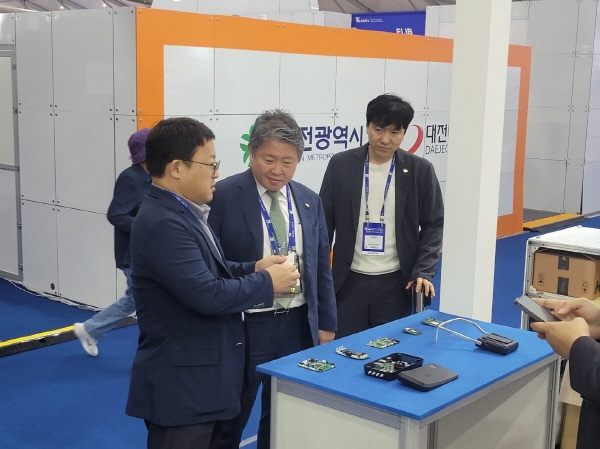 건양대 김용하 총장(가운데)이 2일 계룡대에서 열린 국제방위산업전시회에 참가해 현장을 둘러보는 모습 2.jpg