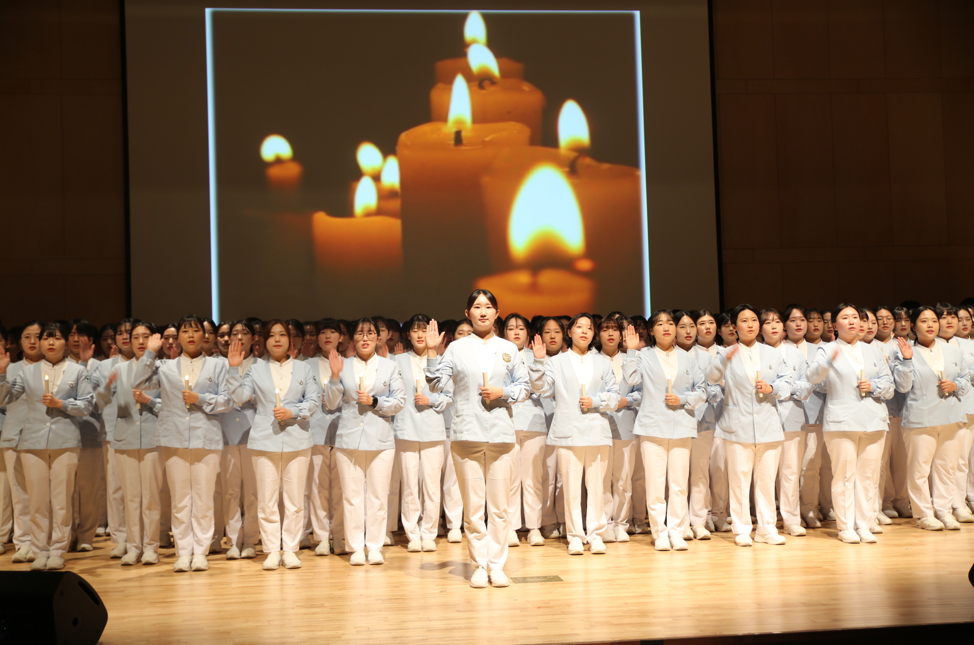 건양대 간호대학, 제27회 졸업메달 수여 및 나이팅게일 선서식 열어 건양대학교(총장 김용하) 간호대학(학장 임효남)은 21일 오후 대전 메디컬캠퍼스 리버럴아츠홀에서 ‘제27회 졸업메달 수여 및 나이팅게일 선서식’을 개최했다. 나이팅게일 선서식은 내년 2월 졸업을 앞둔 학생들이 졸업메달을 수여받는 동시에 스승으로부터 촛불을 이어받으며 나이팅게일의 진정한 희생과 봉사정신을 되새기고 헌신하는 간호사가 될 것을 다짐하는 건양대 간호대학의 전통행사다. 이날 행사에는 대학 설립자 김희수 명예총장 및 최임수 부총장, 배장호 건양대병원 의료원장, 이지은 건양대병원 간호팀장, 임효남 간호대학장, 교직원, 학부모 등 500여명이 참석해 예비 간호사들의 앞날을 축복했다. 건양대 임효남 간호대학장은 "이제 졸업을 준비하는 간호학과 학생들은 모두 어떤 어려움도 극복할 수 있는 힘을 가지고 있다"며 "자기 자신을 포함해 매일 한 사람씩 행복하게 해주는 사람이 되길 바란다“고 당부했다. 간호대학은 이날 나이팅게일 행사에 앞서 2024학년도 수시 최초 합격자 및 학부모를 대상으로 간호대학 예비대학캠프를 진행했다. 건양대 간호대학 수시 합격생들은 이날 간호대학 교육·시설, 선후배와의 간담회, 핵심간호술 체험 및 기숙사 투어 등 대학과 학과에 대한 자세한 정보를 얻고 선배와의 대화를 통해 학과 생활과 미래 진로를 설계하는 시간을 가졌다. |