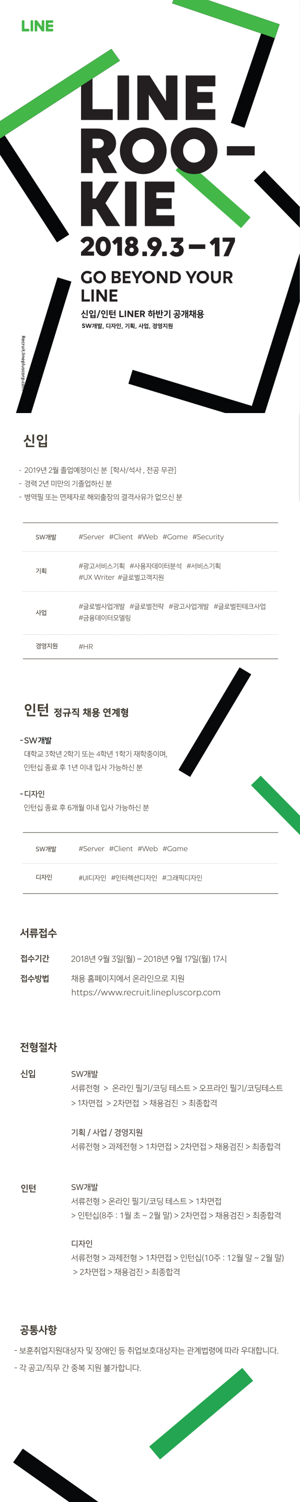 제목 (~9/17)[LINE]신입/인턴 LINER 2018 하반기 공개채용 안내