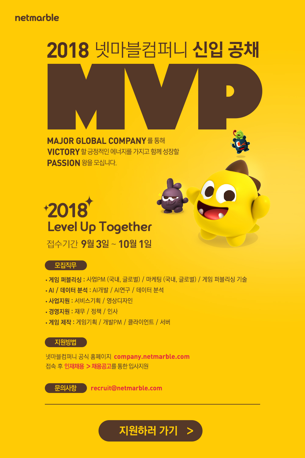 (~10/1)2018 [넷마블컴퍼니] 신입 공채 안내 글의 상세내용
