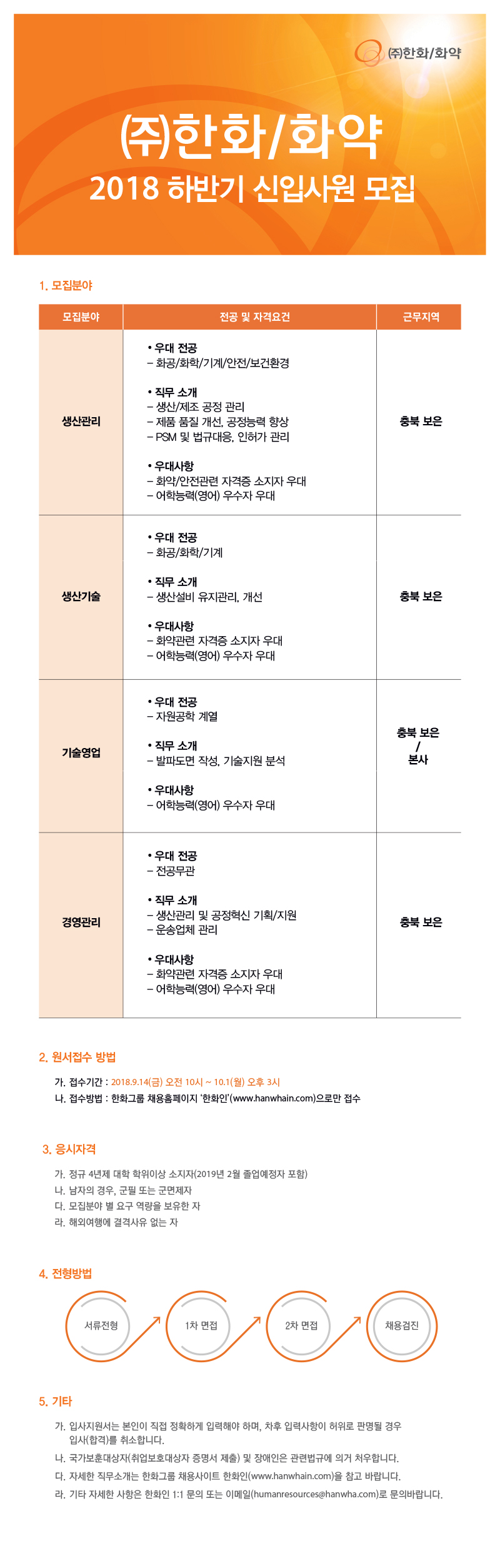 (~10/1)[한화화약]2018 하반기 신입사원 모집 안내 글의 상세내용