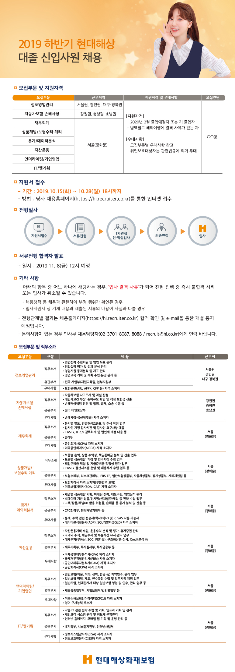 (~10/28) [현대해상] 2019 하반기 신입사원 채용 안내 글의 상세내용