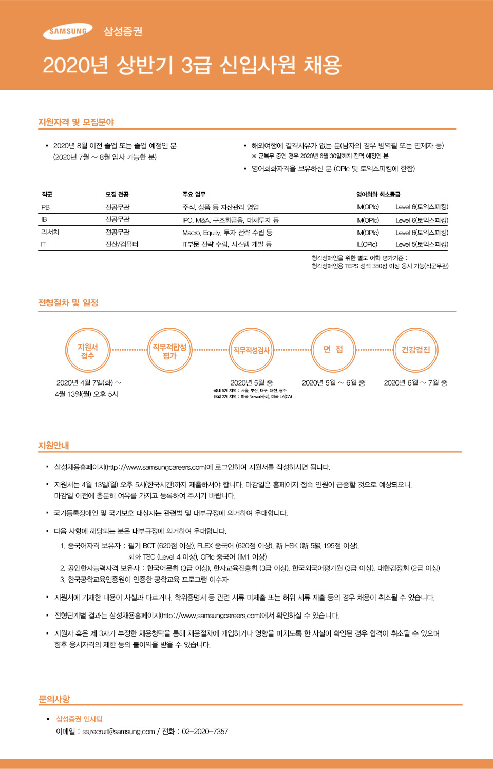 (~4/13)[삼성증권]3급 신입사원 채용공고 글의 상세내용