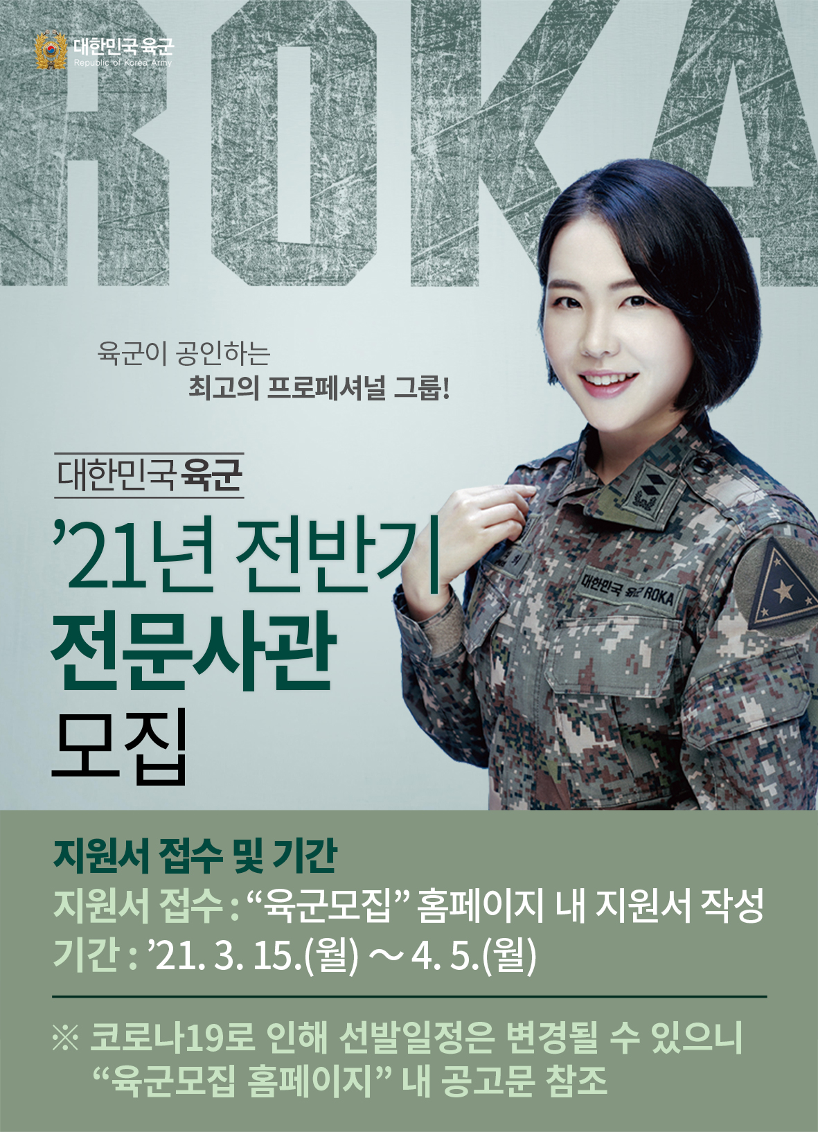 제목 육군간부 모집('21년 육군 전반기 전문사관 모집)