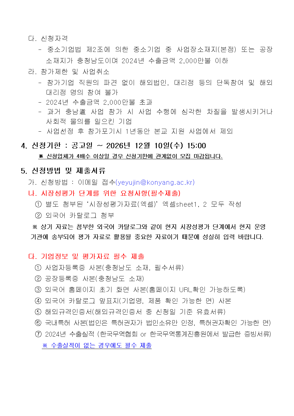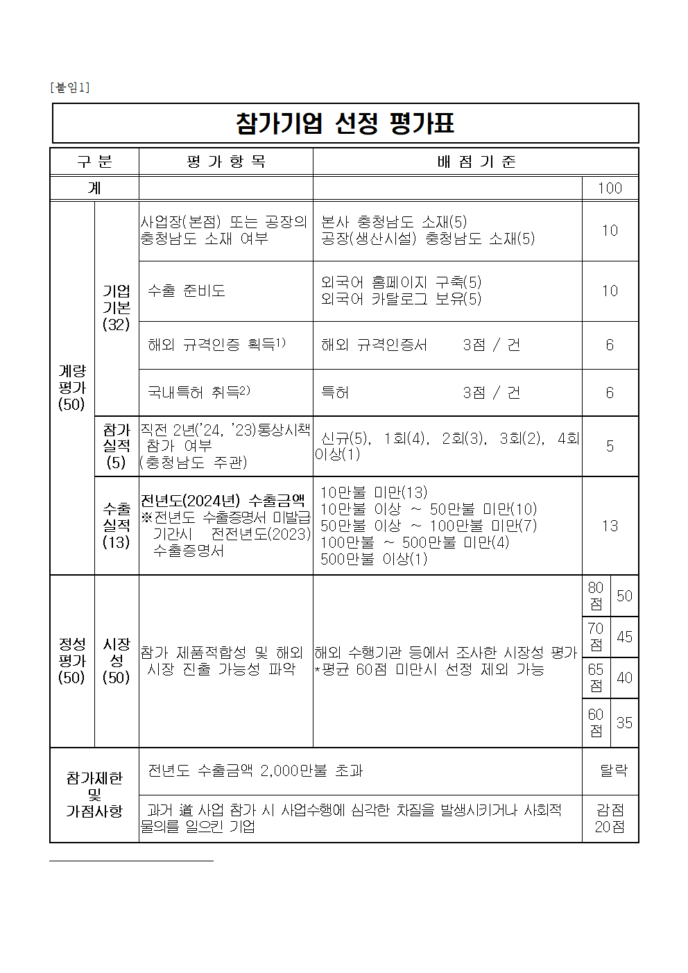 | 제목 | 충남 지역 기업의 해외 홍보전 및 수출상담회 참가 기업 모집 안내 | ||||