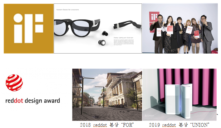 2017 IF Design Award/ Assistant Glasses Set/ 대상 김예진/김정민/배주현/이연재 2017 IF Design Award/ Dot Navi/ 본상 김예진/김정민/배주현/이연재 2018 Red Dot Design Award / For/ Winner 배주현 2019 Red Dot Design Award / Union / Winner / 이연재 2019 Spark Design Award / Light Bell / Finalist/ 정윤선 2020 IF Design Award / MBDL / 본상 / 송아름/오지민 2020 IDEA Design Award / Bresay/ Finalist / 정윤선 2021 IF Design Award / Ringo / 본상 / 정진수/손중규 2022 IF Design Award / Blinten / 본상 / 신아현/안소희 2023 IF Design Award / Woody / 본상 엄정우/유진서 2023 IF Design Award / Solidow / 본상 / 엄정우/유진서 2024 IF Design Award / Moonlit 본상 / 조서우